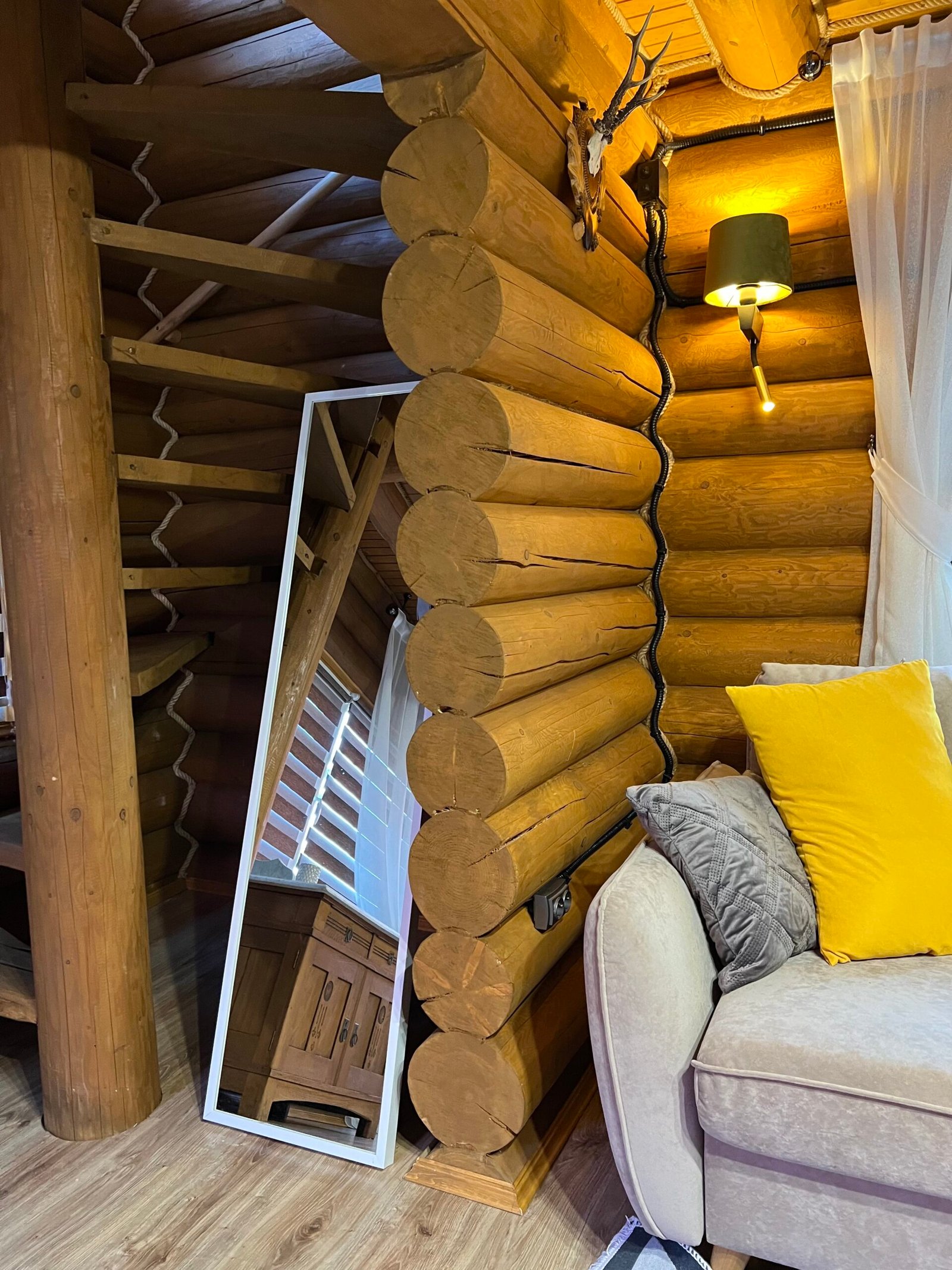 Перший поверх – столик для 4-х, ванна кімната, холодильник, чайник, мікрохвильовка, індукційна плита, кухня з усім необхідним, розкладний диван, телевізор , камін , шафа.